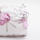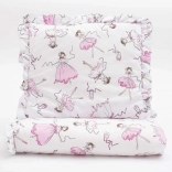 Sættet er ideelt til gåture og hjemmebrug i barnevognen. Farveægte print med ballerina-motiv virker visuelt beroligende og smitter ikke af på tøjet. Takket være materialets behagelige blødhed vil dit barn have det varmt og komfortabelt hele året.