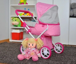 Dukkevognen MILLY MALLY Alice Prestige Pink efterligner en rigtig barnevogn. Den dybe, aftagelige lift kan også bruges som bærbar babylift, hvor en dukke op til 40 cm ligger behageligt. Takket være den kompakte konstruktion er vognen let at bære og opbevare, og polyesterbetrækket kan desuden nemt vaskes.