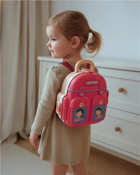 Denne pige-rygsæk til skønhedsleg understøtter rolleleg, udvikler kreativitet og finmotorik. Børn kan trygt “sminke” sig og passe deres mini-salon hvor som helst og når som helst.