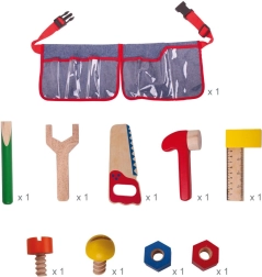 Takket være det justerbare spænde tilpasses bæltet nemt og giver bevægelsesfrihed. Hvert stykke værktøj er ideelt i størrelsen til små børnehænder, hvilket fremmer udviklingen af finmotorik og koordination. Sættet indeholder 10 forskellige dele, som giver masser af muligheder for kreativ leg.
