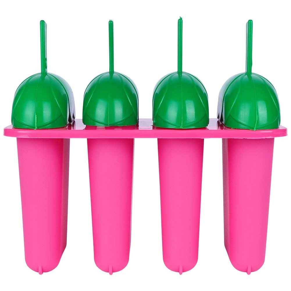 Lav hjemmelavede ispinde nemt og sundt. Sættet indeholder 4 forme i et stativ med målene 16 × 7,5 × 14 cm. Det er lavet af kvalitetsplast uden BPA, har en praktisk anti-væltestativ, nem påfyldning og udtagning samt let rengøring. Ideelt til yoghurt, juicer, smoothies og sorbeter.