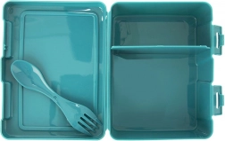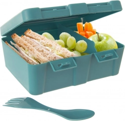 Let og robust lunchbox, som gør det nemt at transportere og opbevare mad, bevarer dens friskhed og aroma og reducerer behovet for engangsemballage. Det integrerede 2i1-bestik (længde 14,5 cm) har sin plads under låget, så det altid er lige ved hånden. Boksen er lavet af fødevaresikre materialer og egner sig til daglig brug i skole, på arbejde, på udflugter og rejser.