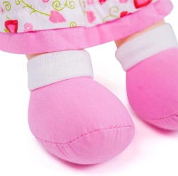 Dukken Kelly har en blød krop, der sikrer sikker kramning for dit barn.