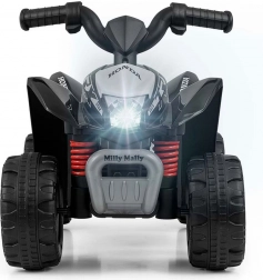 En stilfuld og holdbar elektrisk ATV til de mindste – ideel til de første køreture både hjemme og i haven. Når gaspedalen trykkes ned, starter den jævnt, og forlygten tændes for en endnu mere realistisk oplevelse. Takket være de brede hjul med terræn-mønster klarer den også mindre jævne underlag og giver fremragende stabilitet.