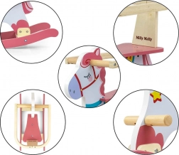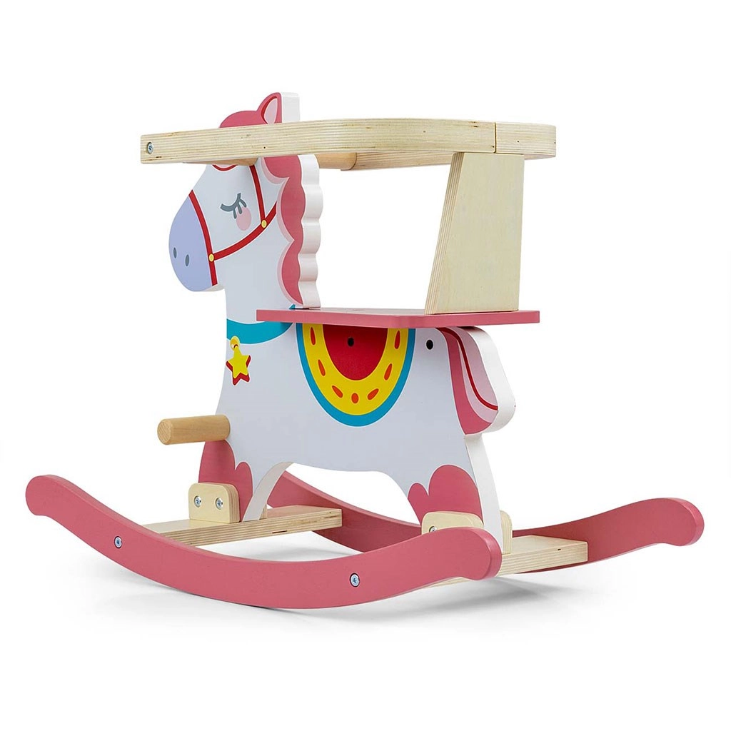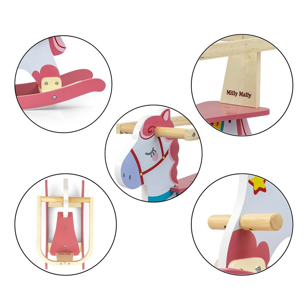 Hesten er udstyret med solide håndtag, fodstøtter og har profilerede meder, som sikrer jævn gyngning uden utilsigtet væltning. Det moderne pastelfarvede design passer let ind på ethvert børneværelse, og med gaveæske er den også en smuk gave.