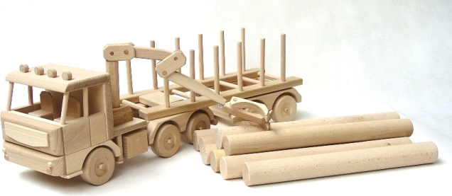 Lastbilen med tømmer er et ideelt legetøj til at udvikle finmotorik, fantasi og koordination. Perfekt som en kvalitetsgave, der ikke skuffer.