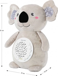 Den søde, bløde koala med aftagelig projektor forvandler børneværelset til en stjernehimmel og hjælper barnet med at falde roligt i søvn. Den tilbyder 10 vuggeviser, 5 typer hvid støj, 7 farvetilstande for lyset, timer 30/60/90 min og 5 lydstyrkeniveauer. Det bløde design og sikre, broderede detaljer er ideelle til babyer fra 0+ måneder.