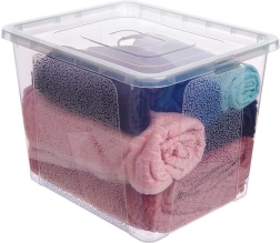 Låget lukkes med et blidt klik og hjælper med at beskytte de opbevarede genstande mod støv og overskydende fugt. Afrundede hjørner øger sikkerheden under brug. Boksen er ideel til tekstiler, legetøj, tøj, køkkentilbehør, værktøj, bøger og dokumenter – den kan bruges i køkken, spisekammer, stue, garage og på kontor. Ved køb af flere kan de stables sikkert.