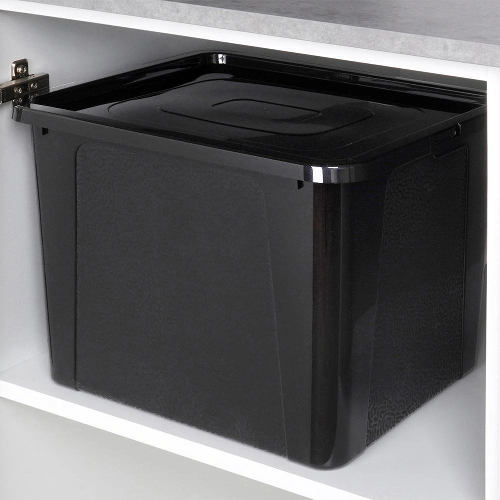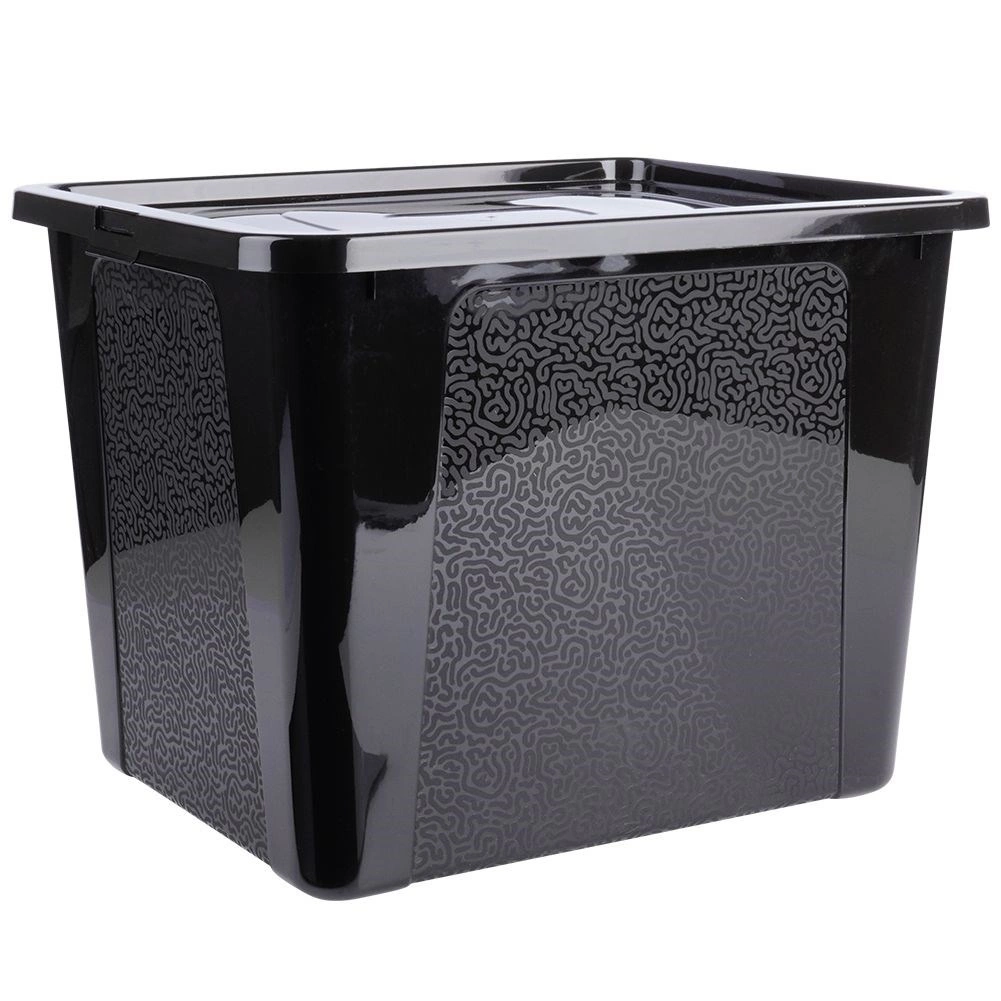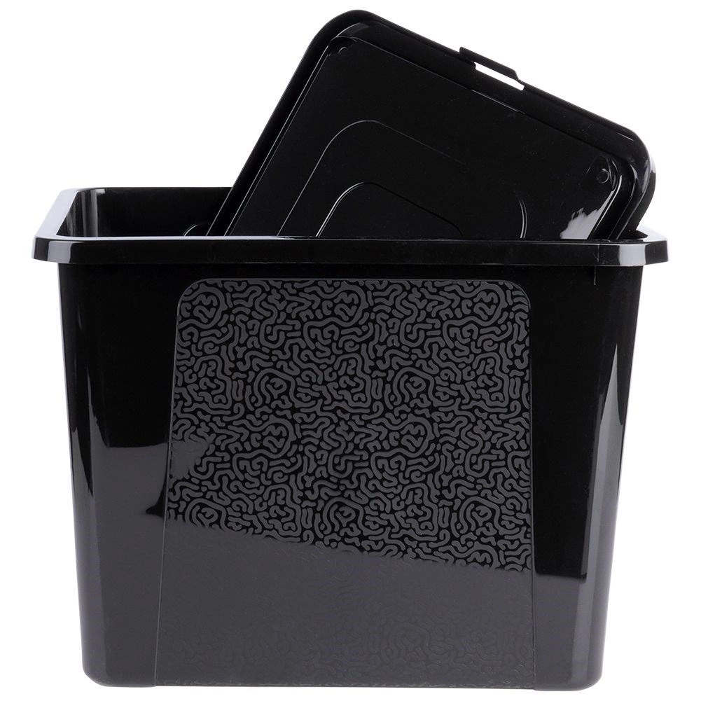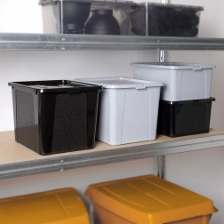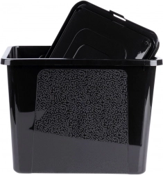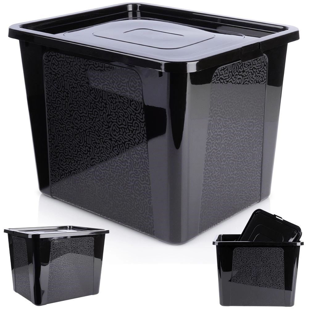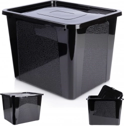 Praktisk opbevaringsboks med låg med en kapacitet på 30 l, som hjælper med at holde orden i enhver husholdning. Den er holdbar og let, fremstillet af kvalitetsplast i sort, og takket være det kliklåste låg beskyttes indholdet mod støv og fugt. Ideel til hjem, kontor, værksted og garage, med diskret dekoration for stilfuld opbevaring.