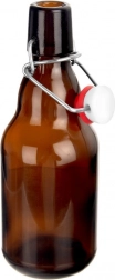 Denne kvalitetsflaske af kraftigt, mørkt glas er ideel til sikker opbevaring af drikke og fødevarer, der kræver beskyttelse mod lys og oxidation. Patentlukningen med silikonepakning giver pålidelig, gentagen lukning uden spild.