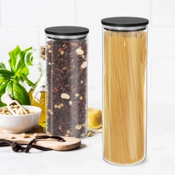 Takket være det gennemsigtige korpus har du altid perfekt overblik over både indhold og mængde. Det minimalistiske design med sort låg passer flot i det moderne køkken og understøtter overskuelig opbevaring af tørvarer – fra pasta og ris til tørret frugt og svampe.