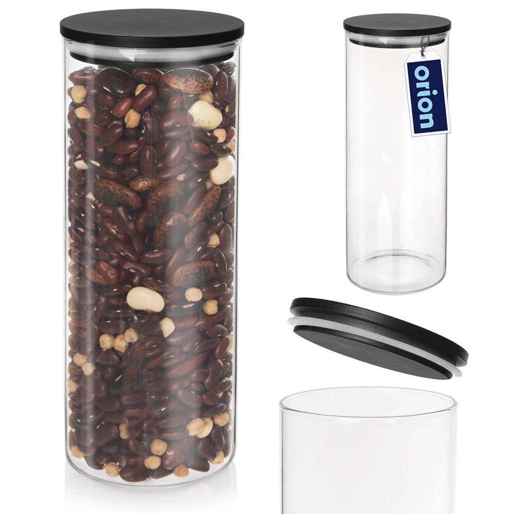 Elegant glaskrukke på 1,2 l med sort låg og silikonepakning, som holder dine fødevarer friske længere. Ideel til kaffe, pasta, nødder, bælgfrugter eller müsli. Holdbart borosilikatglas, lufttæt lukning og nem vedligeholdelse – glasset kan komme i opvaskemaskinen uden låg.