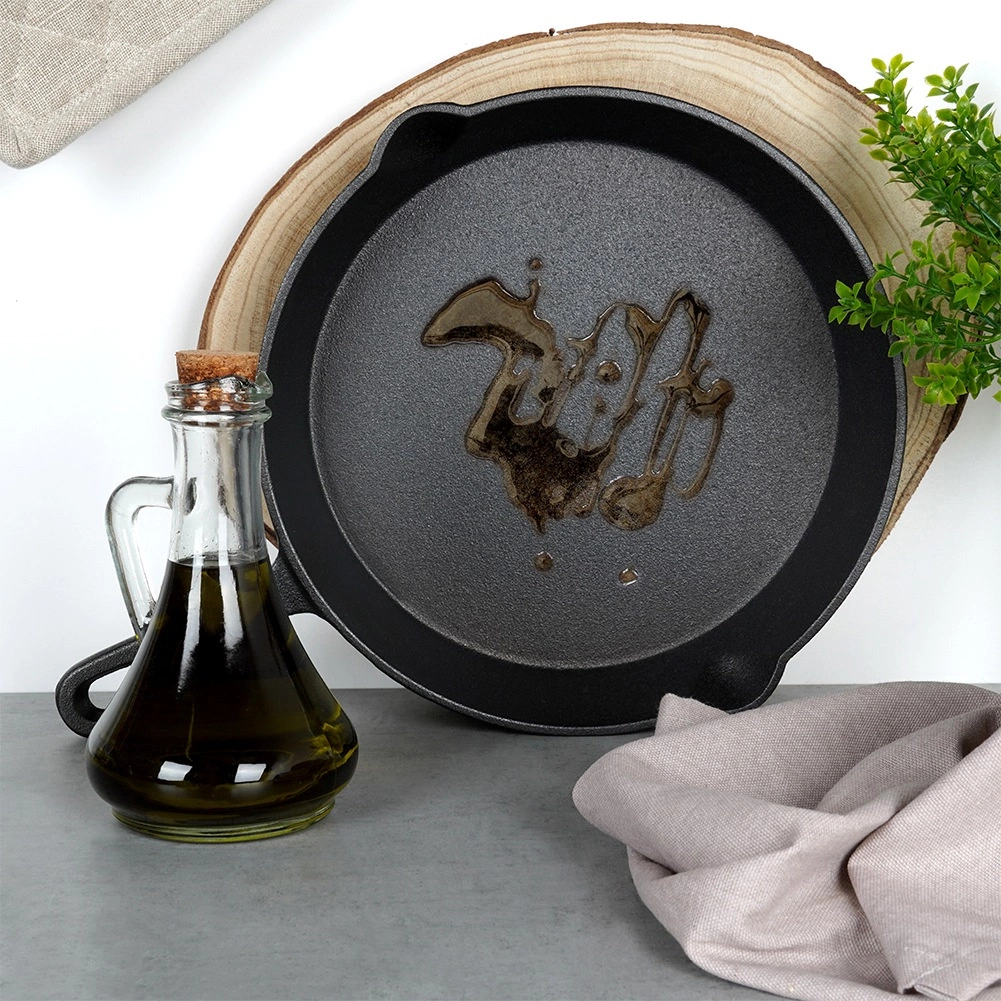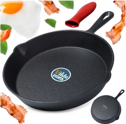 Vedligeholdelsestip: Vask efter hver brug, tør helt af og olie let. Regelmæssig oliering beskytter støbejernet mod korrosion og sikrer lang levetid. Panden har ingen non-stick belægning.