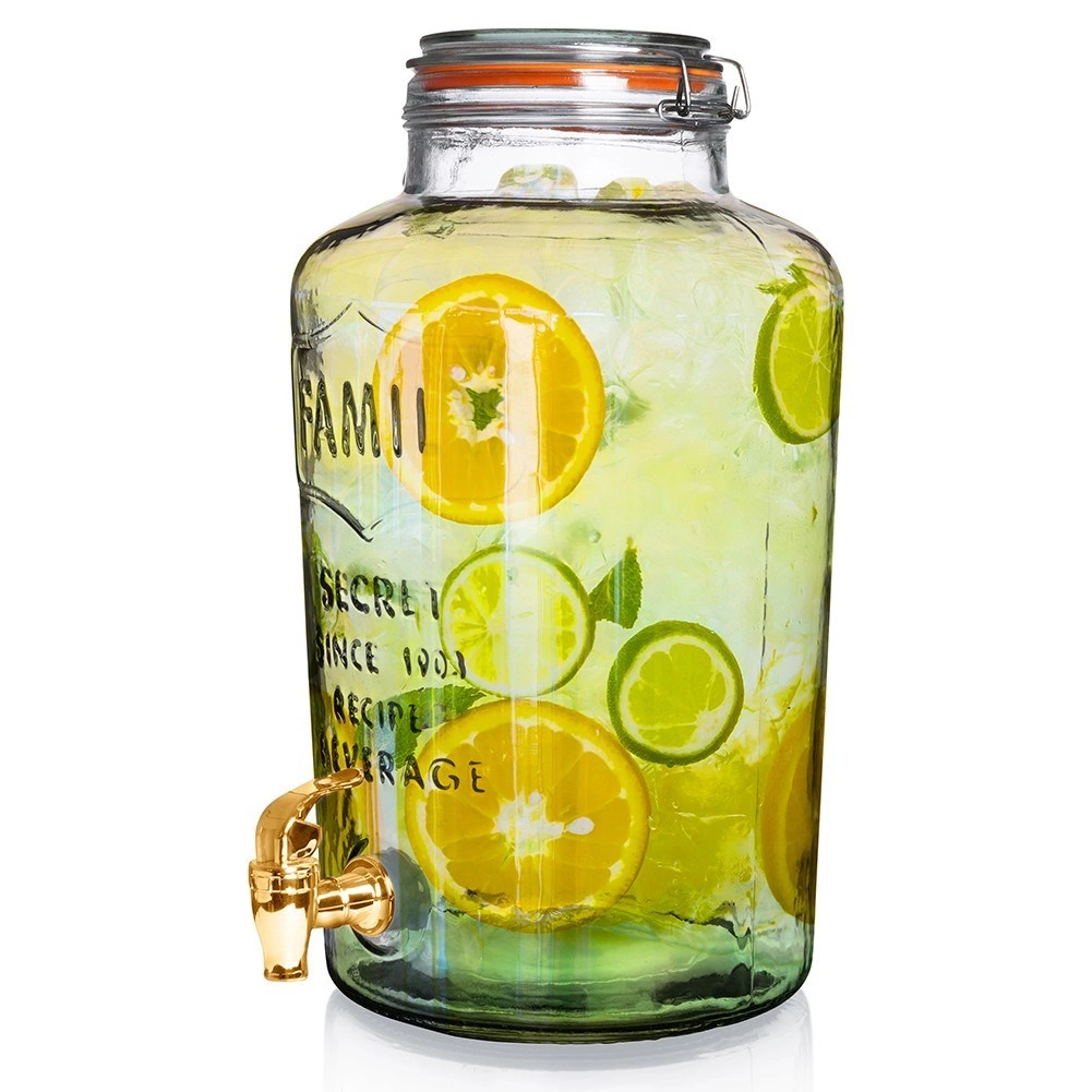 Den universelle størrelse og gevind sikrer kompatibilitet med de fleste glasbeholdere til lemonade, vand eller hjemmelavet iste. Den metalblanke, gyldne finish giver dit bord et premium-udtryk og tilbyder samtidig behagelig håndtering med løftearm for jævn dosering af drikkevarer.