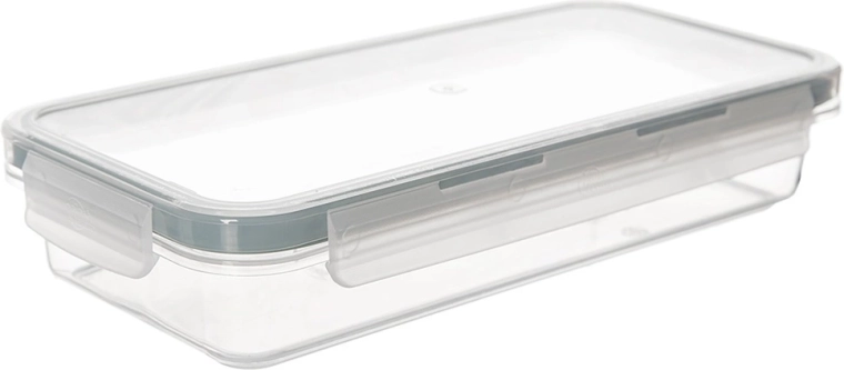 Universal lav madkasse af robust, gennemsigtig plast er perfekt til opbevaring, transport og organisering af måltider. Takket være det solide låg med 4 klips og en kvalitets silikonepakning er indholdet beskyttet mod luft og fugt, så maden holder sig frisk længere.