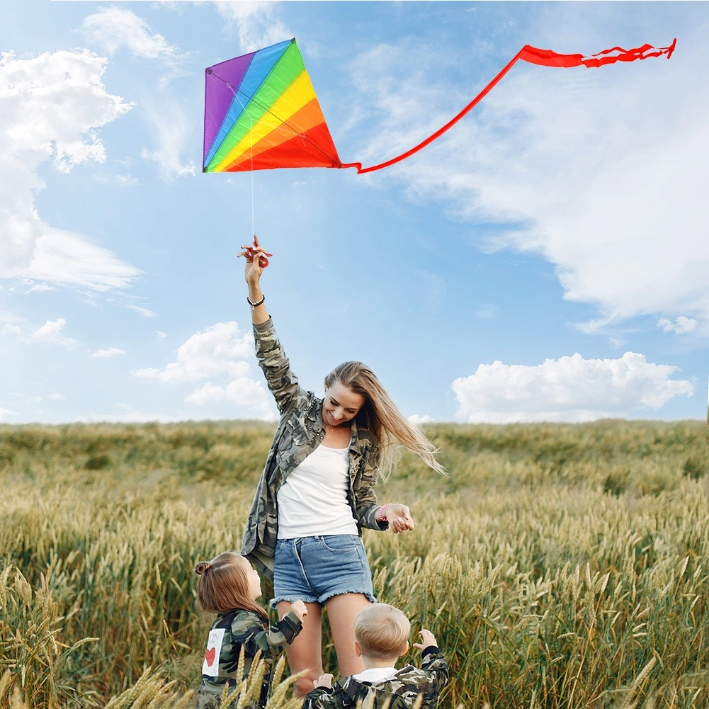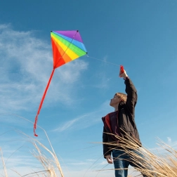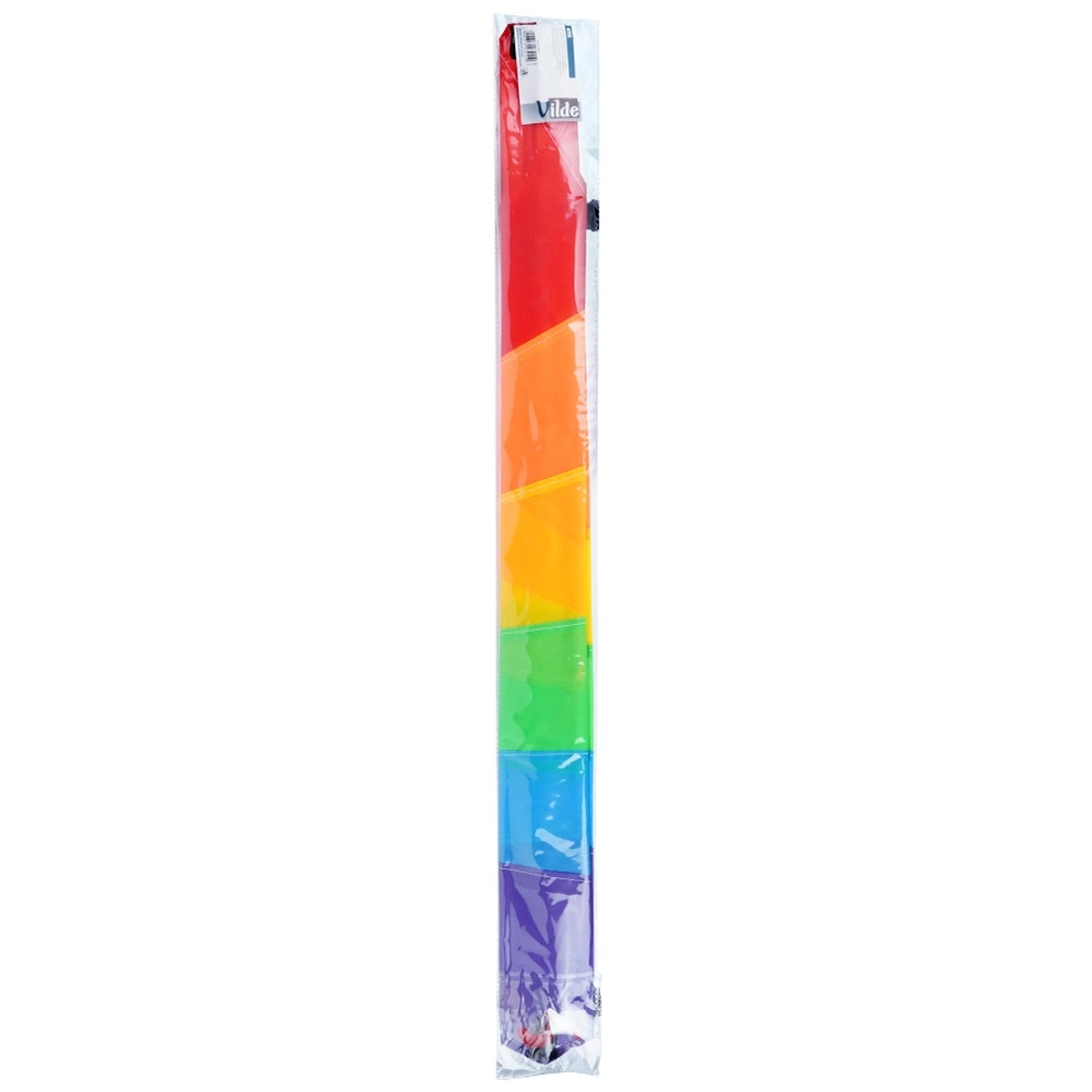 Denne regnbuedrage i kvalitetspolyester begejstrer både børn og voksne. Takket være den lette udførelse løfter den let, og den lange hale giver fremragende stabilitet i vinden. Velegnet til strand, have og åbne enge.