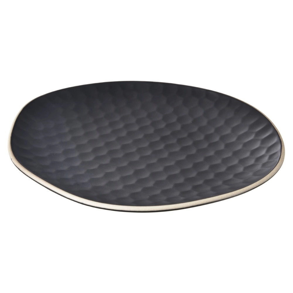 Elegant desserttallerken i kvalitetsstentøj i sort, som flot supplerer både moderne og klassisk borddækning. Den uregelmæssige runde form og den matte, strukturerede overflade med bikubemønster giver tallerkenen et originalt udtryk og forbedrer grebet. Takket være de kompakte mål er den ideel til servering af små desserter, tapas eller forretter.