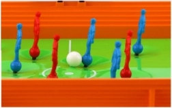 Oplev spændingen fra en ægte kamp i hjemmets komfort. Denne bordfodbold bruger fjedermekanisme til spillerstyring – bøj figuren i den rigtige retning og skyd bolden i angreb. Målmanden kan styres aktivt, og over tribunen sidder en manuel scoretæller, så du altid har styr på stillingen.