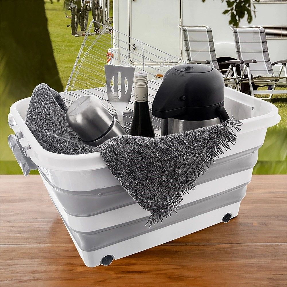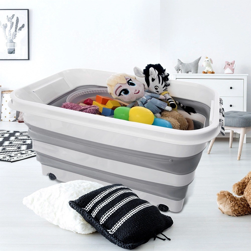 Boksen er fremstillet af holdbar TPR-gummi kombineret med kvalitetsplast, så den tåler daglig brug i hjemmet, i værkstedet og i haven. Den sammenklappelige konstruktion gør det muligt at folde boksen til en højde på ca. 9,5 cm, hvilket sparer plads, når den ikke er i brug. Ideel til opbevaring af sengetøj, legetøj, tøj, tekstiler, bøger og andre husholdningsartikler.