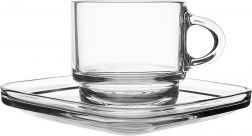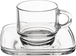 Det klare glas fremhæver farven og cremaen i din espresso, mens den firkantede underkop giver et moderne udtryk og praktisk stabilitet.
