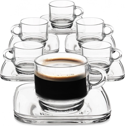 Med dette sæt på 6 glasespressokopper nyder du kaffen som på café. Det transparente glas lader farve og crema træde frem, mens den firkantede underkop giver serveringen et elegant udtryk og opfanger eventuelle dråber. Takket være de kompakte mål er sættet perfekt til hverdagens kafferitualer.