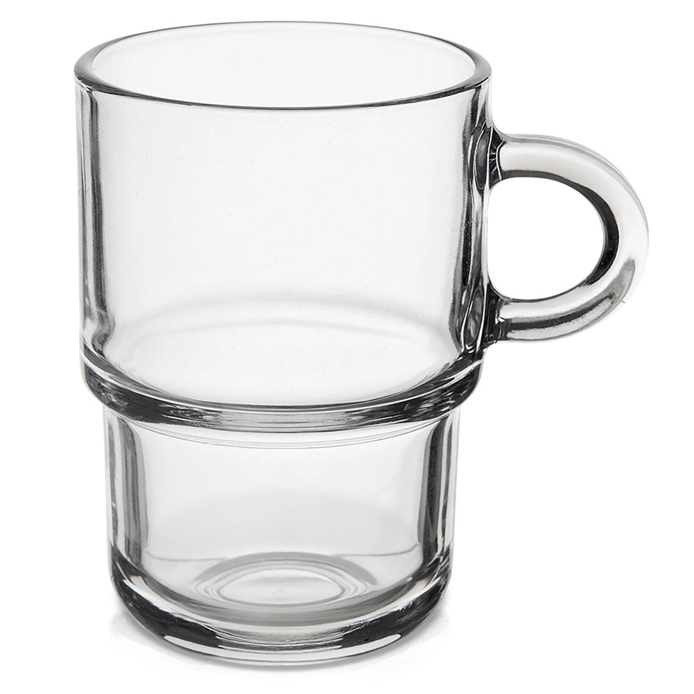 Elegante glas med hank, perfekte til te, kaffe, kakao og kolde drikke. Den klassiske, lige form og det klare design fremhæver drikkens farve og kan nemt kombineres med andet service. Med en kapacitet på 350 ml er de ideelle til en generøs portion af din yndlingsdrik.