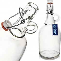 Elegant glasflaske med kapacitet på 1 l og svinglåg er ideel til hjemmelavede juicer, lemonader, vin, likører og vand. Takket være det gennemsigtige glas fremhæves indholdet smukt, og lufttæt clip med silikonepakning holder drikkevarer friske længere. Robust glas, praktisk hank for nem udskænkning og mål på 10 × 10 × 26 cm gør den til et godt valg til både køkken og gastronomi.
