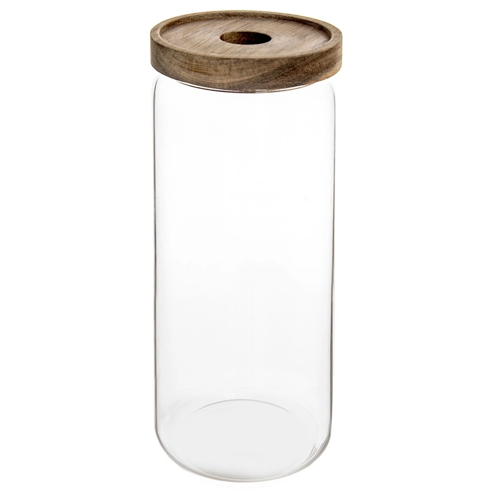 Hold orden i spisekammeret med en stilren glaskrukke på 1,6 l. Det solide borosilikatglas tåler temperatursvingninger, og takket være det transparente design kan du altid se dine beholdninger ved første øjekast. Det naturlige trælåg med siliconepakning sikrer lufttæt lukning og længere friskhed på indholdet.