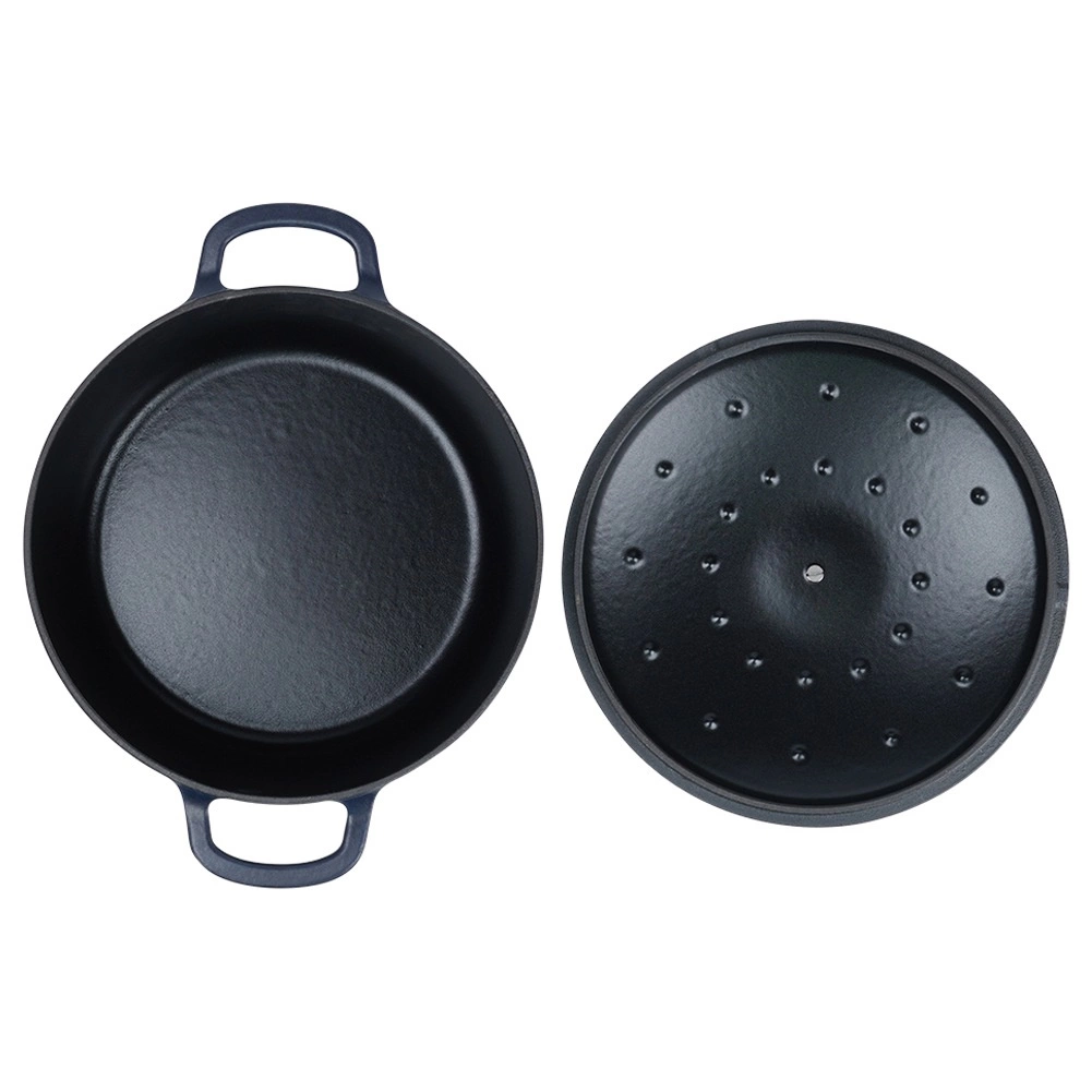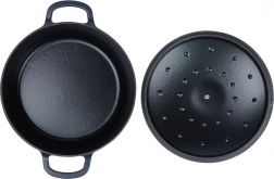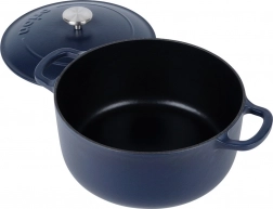 Alsidig støbejernsgryde med låg og en kapacitet på 5,2 l til daglig madlavning, simring og bagning. Takket være den jævne varmefordeling, lange varmeakkumulering og varmeresistens op til 250 °C klarer den supper, gullascher og stege på komfur, i ovn og på grill. Den indvendige emaljerede overflade gør det lettere at lave mad og nemt at rengøre, mens det robuste greb i rustfrit stål på låget og de brede sidehåndtag sikrer sikker håndtering.