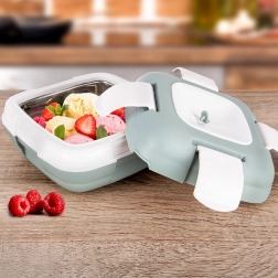 Takket være fire låseklips og en kvalitets-pakning er beholderen lufttæt og lækker ikke. Brug den som en termobøtte til varme supper og saucer samt til kolde retter eller is om sommeren. Den lette konstruktion er behagelig at bære, og de kompakte mål 17,5 × 17,5 × 9,5 cm sparer plads i tasken.
