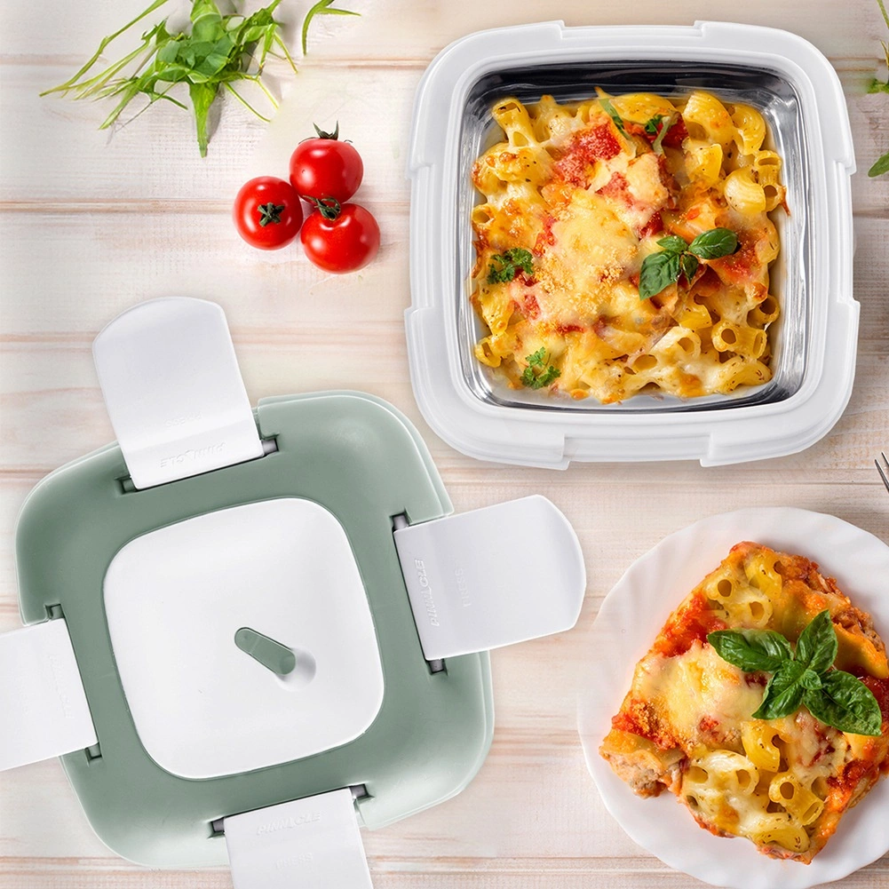 Den indbyggede ventil muliggør sikker udluftning og nem åbning efter transport af varme retter.