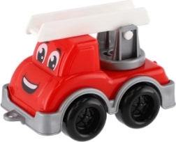 Sættet indeholder tre farverige biler - brandbil, personbil og varevogn, alle med venligt ansigt og sikre for børn.