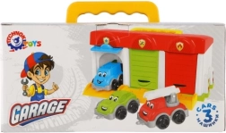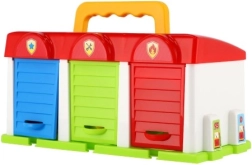 Denne farverige plastikgarage er ideel for enhver lille bilentusiast. Den tilbyder opbevaringsplads til tre biler, som er en del af sættet: brandbil, personbil og varevogn. Hver bil har sin egen indgang til garagen, hvilket sikrer let ind- og udkørsel. Garagen fremmer imaginativ leg og udvikler børns motoriske evner.