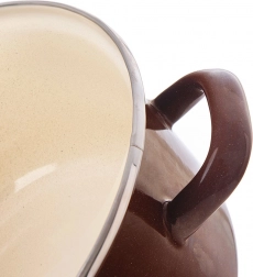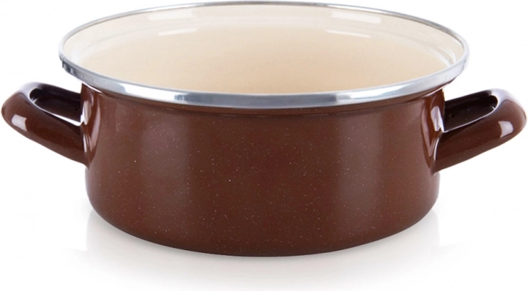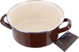 Elegant gryde i retrostil fra Brown-kollektionen, der kombinerer emaljens holdbarhed med et tidløst design. Yderside og håndtag i brun, indvendigt cremefarvet emalje, øverste kant i rustfrit stål for øget holdbarhed. Takket være jævn varmefordeling er den fremragende til supper, saucer og simreretter.