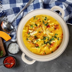 Den populære retrostil forenes med en robust konstruktion af emaljeret stål, som er sundhedsmæssigt ufarlig og skånsom for allergikere. Gryden er perfekt til supper, saucer og simreretter og takket være det elegante udseende egner den sig også til stilfuld servering direkte på bordet.