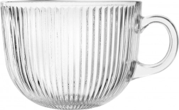 Dette rummelige glas med hank kombinerer tidløst design og funktionalitet. Det transparente glas med vertikal rifling giver et elegant look, forbedrer grebet og lader farverne i te, kaffe eller lemonade komme til deres ret. Med en kapacitet på 500 ml serverer du nemt latte, løs te og urtete.