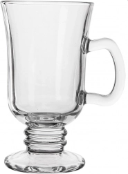 Dette høje glas med hank og dekorativ stilk giver dine varme drikke et eksklusivt udtryk. Det transparente glas fremhæver lagdeling i latte og latte art, mens den brede, stabile base sikrer sikker servering.
