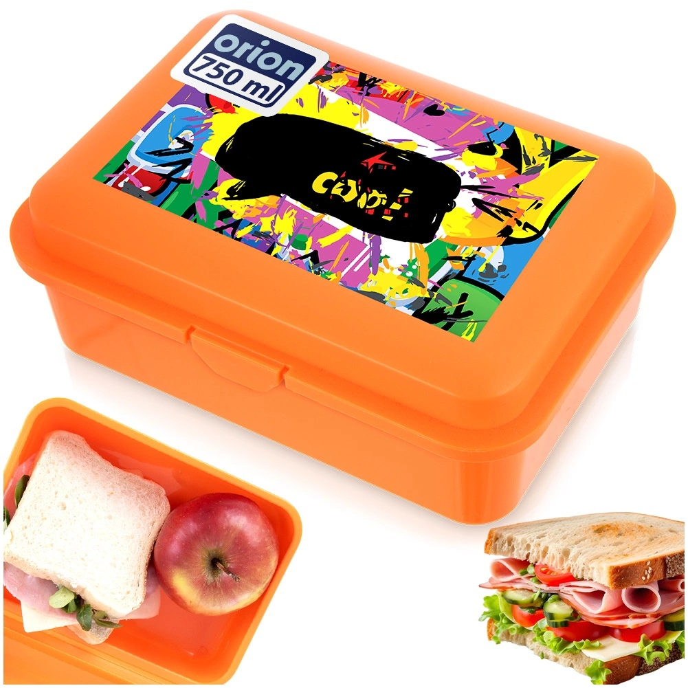 Hold din mad frisk og lige ved hånden. Den orange madkasse med det glade print Cool er perfekt til børn i skole og til voksne på farten. Takket være den solide clips forbliver indholdet sikkert lukket, og de kompakte mål passer i både rygsæk og håndtaske.