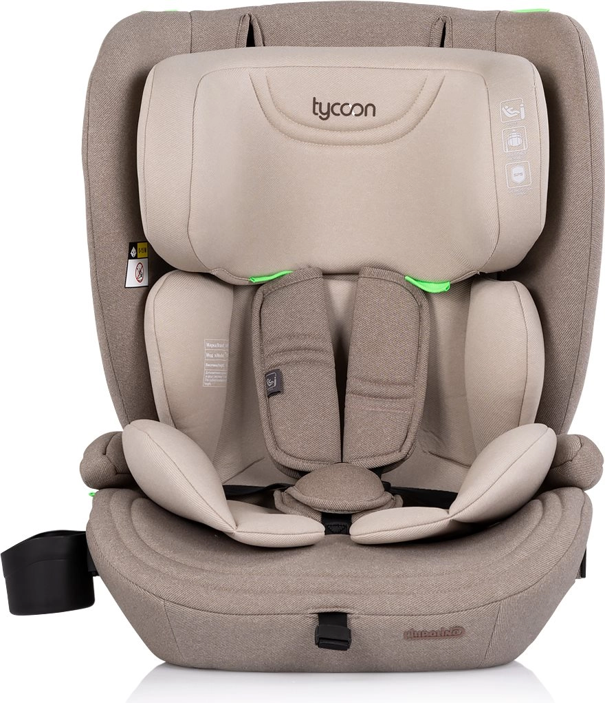 CHIPOLINO Tycoon i-Size er en alsidig autostol til børn med højde 76–150 cm, som kombinerer maksimal sikkerhed med komfort på hver rejse. Takket være standarden ECE R129 i-Size er den testet ved frontal-, bag- og sidekollision og tilpasser sig barnets vækst via den justerbare hovedstøtte og den bløde polstring.