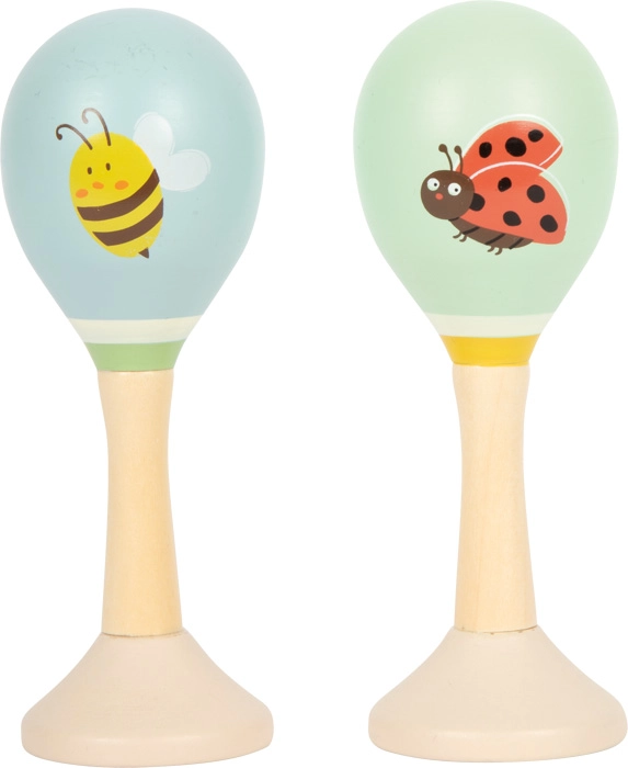 Giv børnene glæden ved deres første musikalske oplevelser. Trærumbaerne Small Foot med bi- og mariehønemotiver ligger godt i hånden, rasler behageligt og er takket være den glatte overflade sikre selv for de mindste. Pastelfarver og det kære design indbyder naturligt til leg og udforskning af rytme.