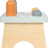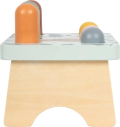 Denne kvalitets-bankebænk i træ i pastelfarver er ideel til de første færdighedslege for børn fra 1 år. Hammeren ligger godt i de små hænder, og de farverige pinde indbyder til gentagen leg, som naturligt udvikler koncentration, opmærksomhed og hurtige reaktioner.