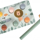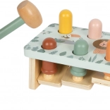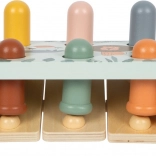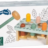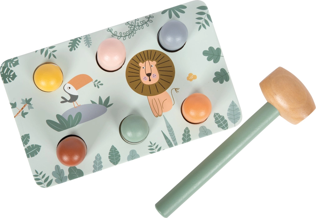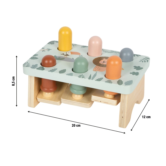 Opdag den legende bankebænk med safaritema fra small foot, fremstillet af 100% FSC-certificeret træ. Børn banker pinde ned med hammeren og oplever en overraskende effekt: når én pind forsvinder, springer en anden op på den modsatte side! Legetøjet med søde dyremotiver, glatte, afrundede kanter og solid trækonstruktion understøtter finmotorik, øje-hånd-koordination og forståelse af årsag og virkning.