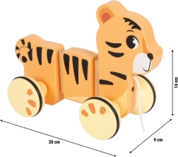 Med certificeret FSC®-træ støtter den ansvarlig skovdrift. De gummibelagte hjul beskytter gulvet og giver godt greb, mens træksnoren hjælper med at udvikle selvstændighed under gang. Legetøjet passer perfekt sammen med andre elementer i safari-kollektionen.