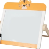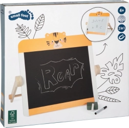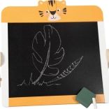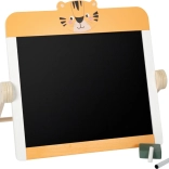 Denne bordtavle 2-i-1 kombinerer en kridtside og en hvid magnetisk, tør-afviskelig side i et kompakt design. Takket være det sammenklappelige stativ kan den nemt stilles på bordet og foldes pladsbesparende sammen efter leg. Det søde safari-tigermotiv stimulerer børns fantasi og inspirerer til skolelege og selvstændig læring.