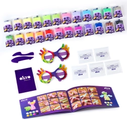 - 24× pakker med masse (10 g), billedvejledning, modelleringsværktøjer, 5× genlukkelig pose, 2× papbriller
