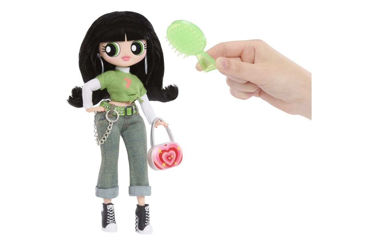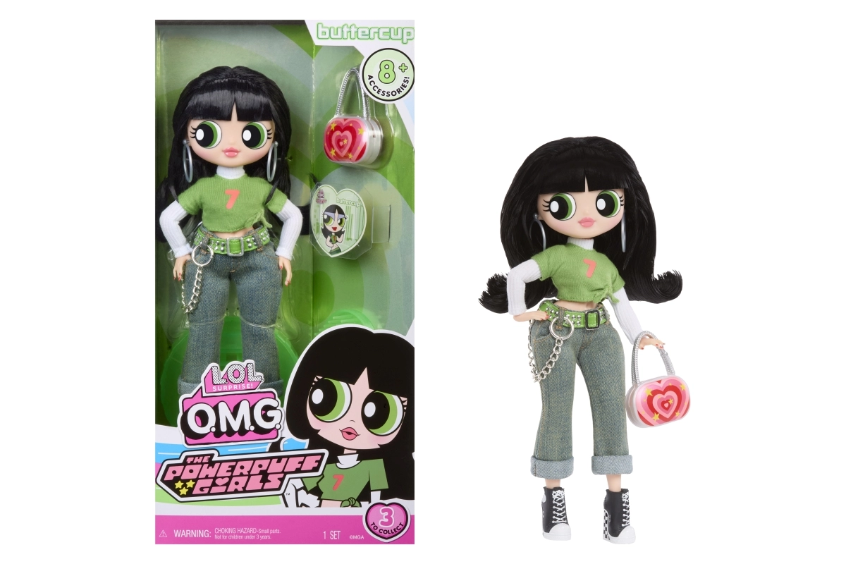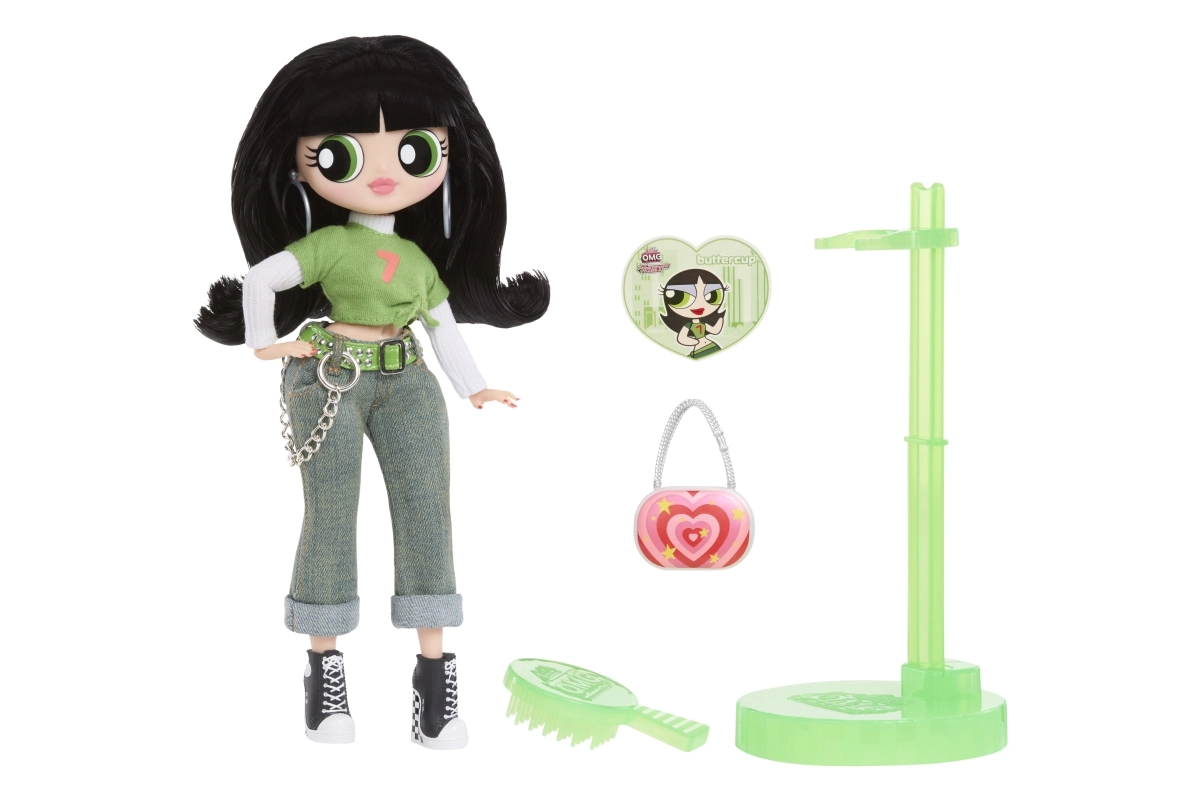 Ikoniske Buttercup slutter sig til L.O.L. OMG Storesøstre i sin markante grønne stil inspireret af serien Powerpuff Pigerne. Takket være leddene er dukken behageligt posérbar, og du kan nemt udstille hende på den medfølgende stand. Det lange hår kan redes og styles med den medfølgende børste, mens det detaljerede outfit og tilbehør giver legen en ny dimension.