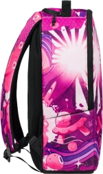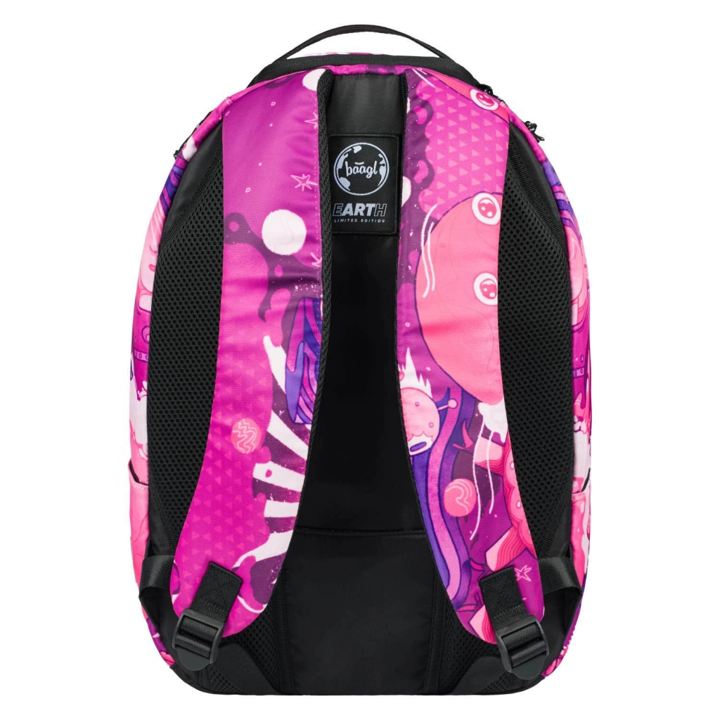 Stilfuld by- og skoledagsrygsæk BAAGL fra eARTh-serien er lavet af 100% genanvendt, vandafvisende materiale og imponerer med et kosmisk UFO-motiv. Den tilbyder ergonomisk formet ryg, behagelige, justerbare stropper, indre lomme til 15" laptop samt praktiske forreste og øverste lynlåslommer. Med lav vægt på 500 g, volumen på 18 l og bæreevne op til 7 kg er den ideel til hverdagsbrug.