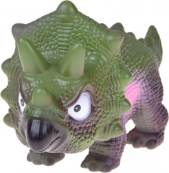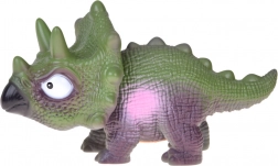 Den interaktive gummitriceratops er det ideelle legetøj til små elskere af den forhistoriske verden. Takket være den strukturerede overflade, der minder om hud, den markante krave med pigge og den robuste krop virker den meget realistisk og understøtter kreativ og fantasifuld leg.