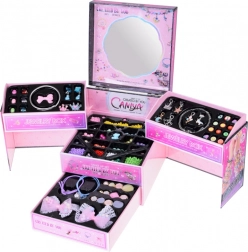 En magisk, udfoldelig smykkeæske med perler, vedhæng og hårpynt forvandler enhver lille modeelsker til skaber af sin egen skønhed. Med tre niveauer af opbevaring, indbygget spejl og rigt tilbehør kan der laves originale armbånd, halskæder og frisurer. Rigt indhold, praktisk organisering og støtte til kreativitet og finmotorik gør sættet til en ideel gave til daglig leg.