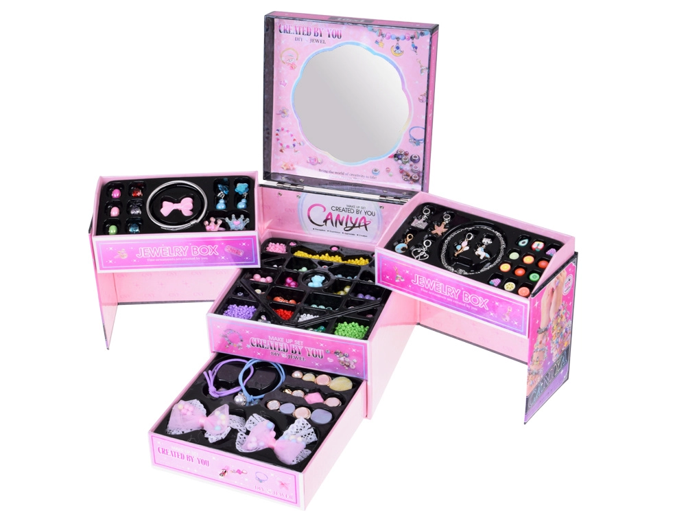 - Udfoldelig smykkeæske til børn med DIY-perler og hårtilbehør
